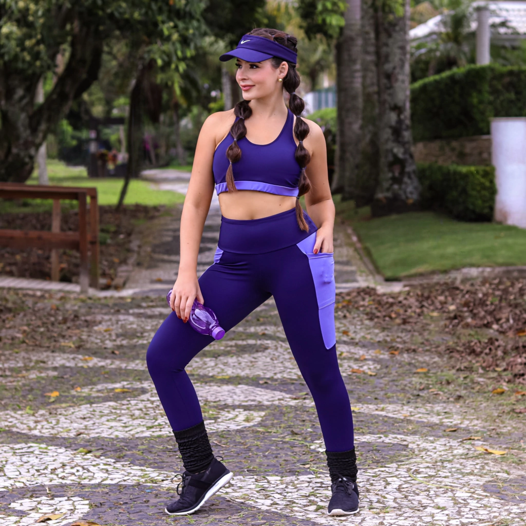 O design moderno e elegante da Calça Legging Fitness c/ Bolso é perfeito para compor looks esportivos e casuais. Seu tom de azul marinho com recortes em azul claro proporciona um visual vibrante e elegante.