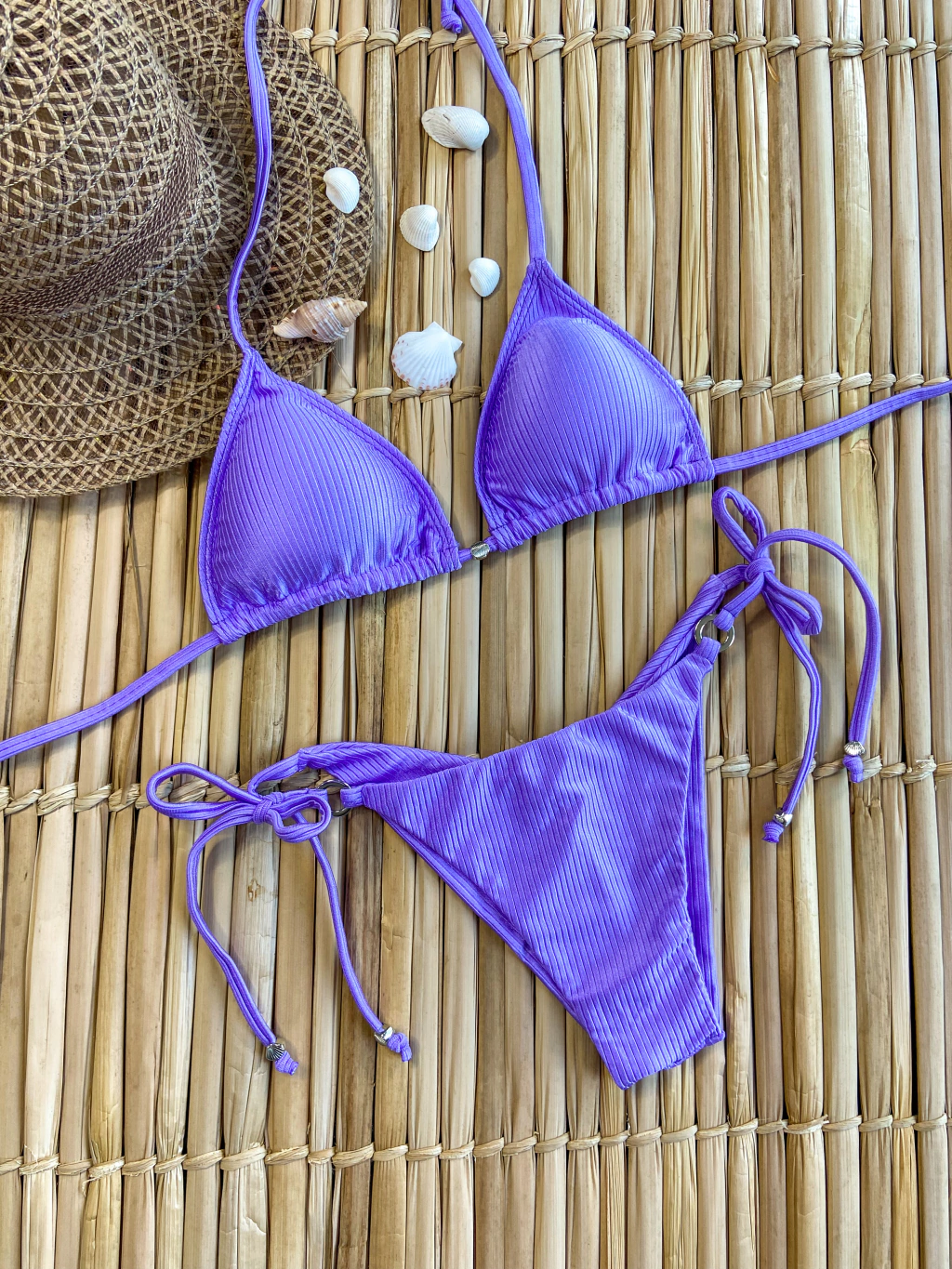Combine esta peça atemporal com seu top favorito e esteja pronta para brilhar com confiança e estilo onde quer que vá! A Calcinha Lacinho Lavanda Canelado é a garantia de qualidade e satisfação para quem busca o melhor da moda praia.