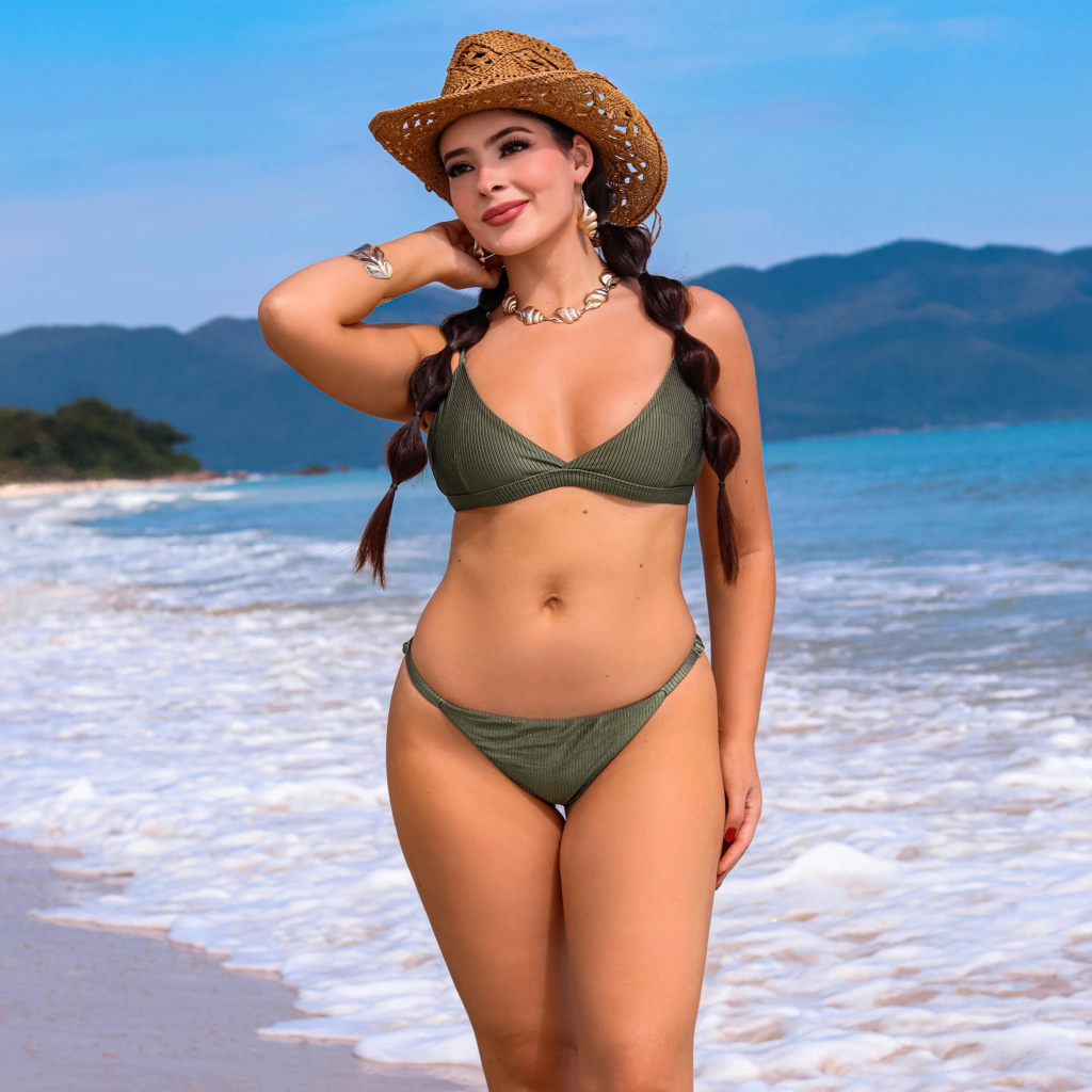 Na cor verde militar, essa calcinha é uma escolha versátil, fácil de combinar com diversos tops, criando combinações estilosas e atuais.