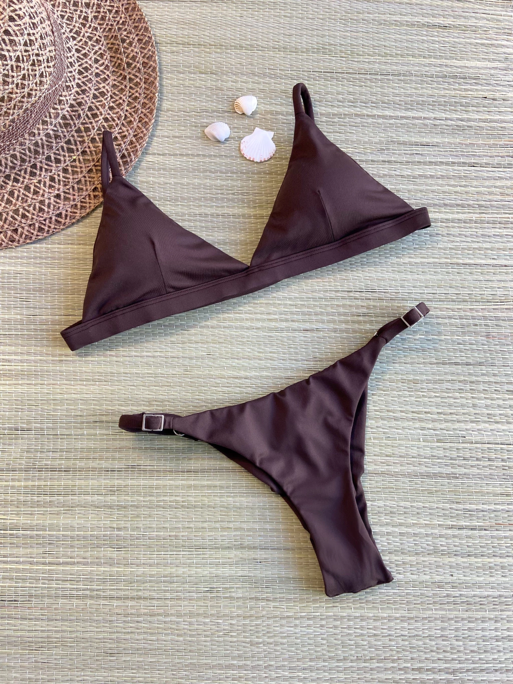 O Top de Biquíni Fixo - Cacau é a escolha perfeita para quem busca conforto e estilo em um só produto. Em um elegante tom marrom, este top se destaca pelo design versátil que se adapta às suas preferências.