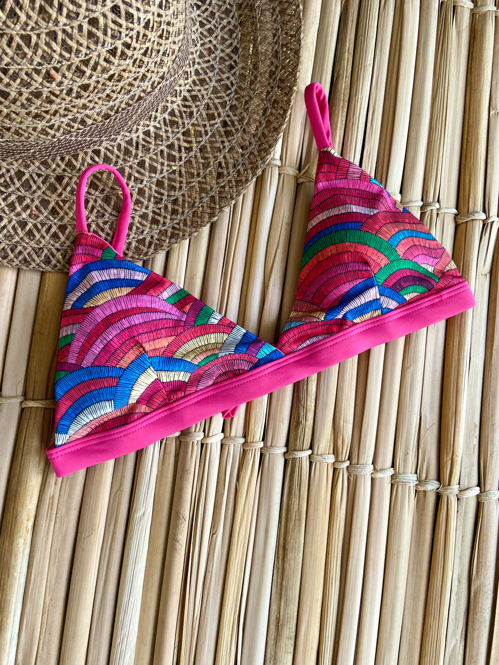 O top fixo é projetado com alças ajustáveis que podem ser usadas no ombro para um ajuste clássico ou amarradas no pescoço para quem deseja aquela marquinha perfeita. Isso permite que você adapte o biquíni de acordo com sua preferência e conforto.